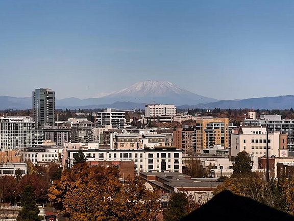 Spectacular Goose Hollow condo with panoramic view of city, mountains, and bridges. Wow factor with night lights. On a clear day, views of Mt. St. Helens, Mt. Rainier, and Mt. Adams! Spacious with high ceilings, French doors to private deck, gas fireplace, great room, open kitchen with large granite island, gas cooking and stainless appliances, eating bar. Hardwood floors and new carpet throughout. Spacious owner's ensuite with walk in closet and whirlpool tub, 2nd bedroom ensuite. Direct outdoor access to the unit (no hallways, elevators, or common areas to pass through). Note: 3rd bedroom is on main level and does not have a door -- currently used as a den/office. This property technically has 3 bedrooms but I'm listing it as a 2-bedroom since the 3rd bedroom is not really usable as a bedroom currently. It's really like a 2.5 bedroom or a 2 bedroom plus an office. Only 11 units in a quiet, friendly building in excellent condition! Very quiet, almost private street. 7-minute walk to MAX lines, street car, PSU, and Farmers Market. 1-minute access by car to all major highways. Rent includes: 2 parking spots (1 secured), water, sewer, and trash. Renter responsible for gas, electric, and cable TV/Internet. No smoking and no pets. Stainless steel refrigerator is included. Pets allowed -- 1 pet max, 40 pound maximum (required by condo HOA rules), $25 monthly pet fee, $500 pet deposit. Rent includes 2 parking spots, water, sewer, and trash. Renter responsible for gas, electric, and cable TV/Internet. No smoking. Stainless steel refrigerator and washer/dryer are included.