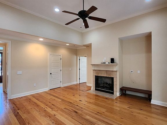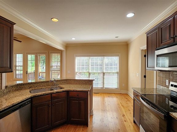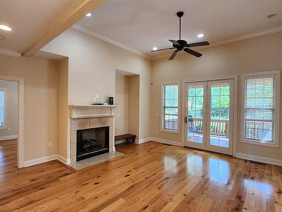 Move-in ready! Relax in the cozy covered deck in backyard. Step into elegance with gleaming hardwood floors and smooth ceilings throughout. The great room, featuring a cozy gas fireplace, opens to a spacious deck through stunning French doors. The kitchen is a chef's dream, complete with granite countertops and stainless steel appliances. The master bedroom is a true retreat, boasting hardwood floors, a striking octagonal boxed ceiling, and his-and-hers closets. This home is wired for surround sound, security with the added comfort of two HVAC systems for optimal climate control. Camden Ridge neighborhood provides a great walking trail and community pools. The owner provides lawn treatment, HOA fee.