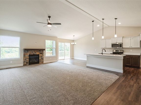 *$2,000 closing costs & FREE refrigerator, washer and dryer (standard package). Welcome to one of Jerry's Homes' finest floor plans, nestled in a serene setting, walkout lot backing up to green space. Enjoy the wild turkeys and deer roaming freely from either the deck or patio. This home is designed to embrace natural light, creating a warm and inviting ambiance throughout the main floor living space. The focal point of the Great Room is a cozy gas fireplace, perfect for gatherings and relaxation. The kitchen boasts a harmonious blend of white upper cabinets with pecan base cabinets and a spacious island, offering both functionality and style. Luxury vinyl flooring and stained trim add a touch of elegance to the space. Step outside onto the deck accessible from the dining area and soak in the surrounding beauty while enjoying a meal or entertaining guests. The lower level presents a finished rec room with direct access to the patio, providing additional space for leisure and entertainment. Don't miss the chance to make this your dream home and a connection to nature.
