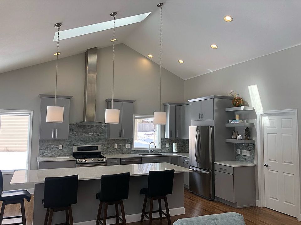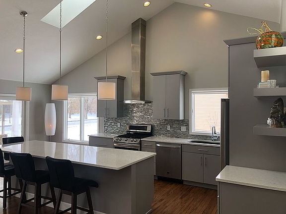 Welcome home to your stunning villa in the gated community of Barrington Estates, located in the Penn-Harris-Madison school district and next to Eberhart-Petro Golf Course. This beautiful home offers 4244 ft.² of total bliss. Completely renovated with luxury features and fittings throughout. Four large bedrooms, three full bathrooms, a great room, formal dining, and a kitchen with peaceful views of your lovely 50â Heatilator fireplace with custom Herringbone design. Natural hardwood flooring throughout the main level, including oak tread stairs. Cathedral ceilings provide an open and airy feeling in the main living area. The kitchen and main level bathrooms are Kraftmaid soft-close custom cabinetry with Cambria quartz countertops. Main level Master bedroom with en-suite bathroom. Custom shoe closet and a separate walk-in closet with custom shelving. Windows throughout providing natural light and breathtaking views! All three bathrooms have porcelain tiled walk-in showers with clear glass doors. Master bathroom features heated floors, a soaking tub, custom drawers with built-in outlets and much more. Laundry room offers a washtub sink with a quartz countertop and custom cabinets, as well. Enjoy your mornings and beautiful sunsets while taking in stunning views of nature from the sunroom. Heated vinyl plank flooring and a sliding door that leads out to the amazing cable railing deck. Full basement with an abundance of space, including a custom office built for two. Quartz-topped workstations, customized cabinets to keep printer, routers and electronics hidden from view as well as a shredding/recycling station. This home boasts an array of modern features and astounding beauty! Come take a look.