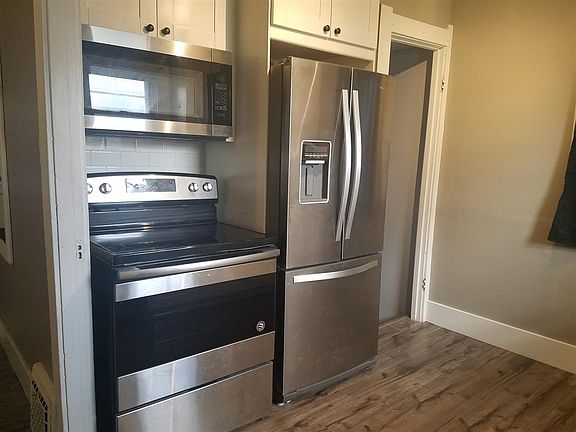 Charming updated 2 BR, 2 bath home with total remodeled kitchen with open floor plan, granite counters, stainless steel appliances, new flooring throughout. Vinyl planking in kitchen dining combo area. Jetted tub. Large fenced yard with shed. Partial finished basement with family room and other room/office. New siding and roof. All electric home. Room to build a garage.