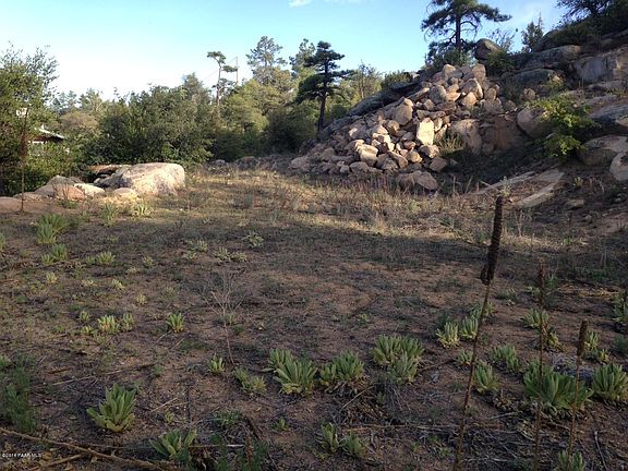 Wonderful view lot close to downtown. Trees and boulders! County property with no HOA. 2 miles to downtown. City water available - documentation form City of Prescott. Building pad already cut in. Large amount of excavation work done.
