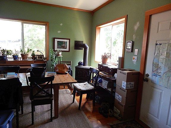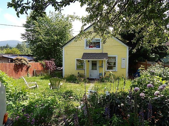 Finders Keepers! Fairhaven Charmer boasting nearly 1100 SF on fully fenced lot with mature plantings. Cute covered front porch opens to living area with free-standing stove on tiled hearth. Kitchen has eat-in space, large cabinets and display shelving. Three bedrooms and two baths. Main bath features claw foot tub and pedestal sink. Lots of natural light. Newer windows and flooring. Warm colors throughout. Upper floor bedrooms have intriguing architectural details and adjacent bath.