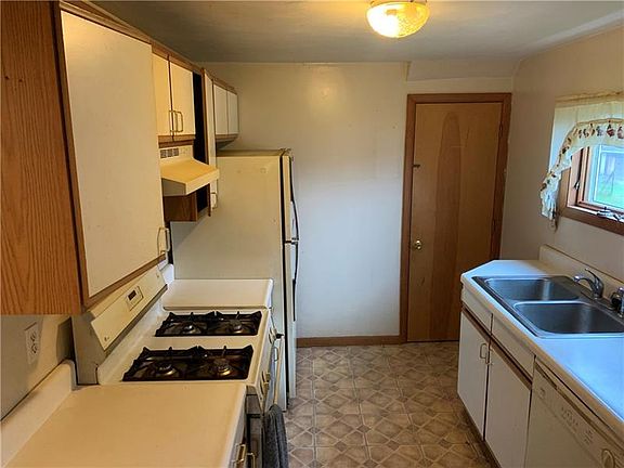 This home is located in a nice neighborhood on a double flat lot. Large living room and dining room combo. Fully equipped kitchen leads to mudroom with access to small deck. Main floor bedroom, full bath with ceramic tile and extra 8x11 area complete the first floor. Second floor has 2 bedrooms, full bath and two storage closets. Full unfinished walkout basement gives tons of storage. Needs some TLC. Convenient location.