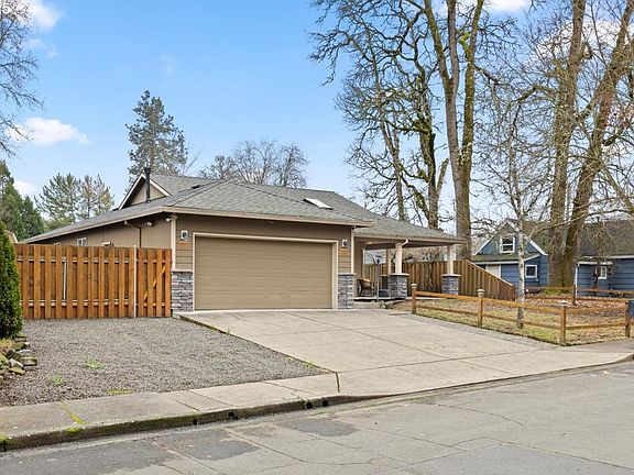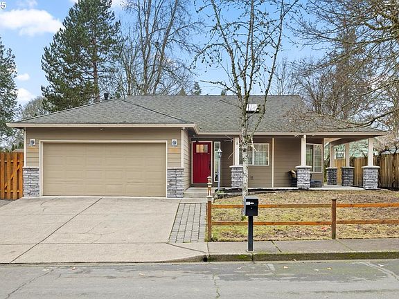 Light and bright updated one level with vaulted ceilings on large level lot. Spacious great room opens to kitchen with stainless steel appliances, tile backsplash, large walk-in pantry and sunny eating nook. Primary suite with walk-in closet. Wrap around covered porch with tongue and groove and recessed lighting. Fully fenced level lot. Huge RV parking with 50 Amp hook up & RV dump. Oversized 2 car garage. Close proximity to Nike, hi-tech, shopping, parks and schools.