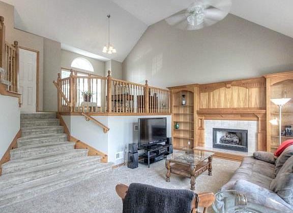 A Front to Back Split with no steps to the kitchen from the garage, makes unloading groceries easy! Fabulous great room with soaring ceilings and large windows looking out to a spacious deck and patio. Beautiful wood book shelves surround the fireplace and add a touch of warmth to the great room. Some new carpet and paint have been added recently to make this one shine and the roof was replaced in 2010. Great neighborhood and schools! HOA dues include the pool, play area, tennis and basketball courts.