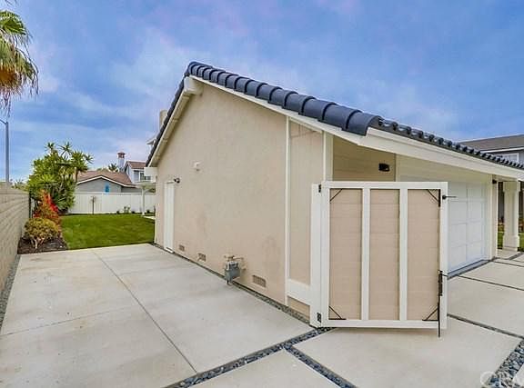 Located in the highly sought after Bolsa Landmark neighborhood, this fully remodeled and reimagined home is ready for its new owner. The property is situated at the end of a cul-de-sac, on an oversized lot with a large side yard perfect for storing an RV, boat, or additional vehicles. As you enter through mahogany double doors you are greeted by a living room with grand vaulted ceilings. The kitchen is in the heart of the lower level, open to the living room, dining room, and family room, and is finished with an upscale stainless steel appliance package, grey stained wood cabinetry, and beautiful quartz counters with a stunning waterfall edge detail. Along the back of the lower level is a large family room that offers great views of the yard and a fireplace accented with striking large scale tiles. At the kitchen window, there is a pass-through serving bar perfect for outdoor entertaining. The back yard is highlighted by a spectacular wood patio cover, an expansive concrete patio, freshly sodded lawn, and lush plantings. There is one room downstairs that could serve as a guest bedroom or perfect home office. Upstairs there are three guest bedrooms and a bathroom with dual sink vanity. The master bedroom is generously sized and includes a walk-in closet and a beautiful en-suite bathroom. This unbeatable location is walking distance from Huntington Central Park, The Bolsa Chica Wetlands, award-winning schools, and the beaches of Surf City USA.