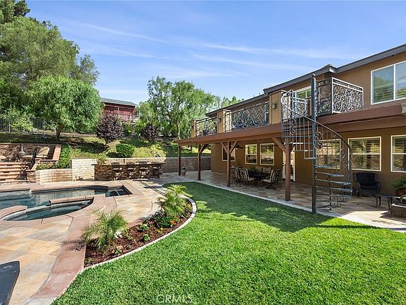 DESIGNER DETAILS WITH INCREDIBLE ENTERTAINING BACKYARD****Welcome to a captivating residence seamlessly blending elegance with cozy comfort, providing a lifestyle of unmatched serenity & high end details. As you approach, a sense of grandeur is immediately conveyed by the wrought iron hammered glass front door, which serves as a striking prelude to the opulence within. Stepping inside, the formal living room greets you, graced by the embrace of a cozy fireplace, inviting moments of tranquility. Adjacent lies the dining room, with its sumptuous custom designed built-in Hutch, framed with wainscoting custom moldings & arched entry. The extensive amount of custom woodwork, with impeccable details, are a standout feature of this home. A downstairs ensuite bedroom, or office are on the main floor. The heart of the home, the family room, boasts its own fireplace, creating a comfortable sanctuary for relaxation and entertainment. It seamlessly flows into the expansive kitchen, bespoke cabinetry & a large island takes center stage, providing ample space for culinary endeavors & casual gatherings. A charming kitchen nook offers a delightful setting for morning coffee or casual family meals. Ascending to the upper level, an inviting bonus room awaits, & a computer tech area provides an organized workspace. Two additional bedrooms & bathrooms grace this floor, one of which is an ensuite, ensuring convenience & privacy for every member of the household. The primary suite is a haven of luxury, featuring an attached deck that offers a serene vantage point overlooking the backyard oasis. The primary bath is a true retreat, boasting a jetted tub, oversized closet, vanity area, dual sinks and a glass-enclosed shower, epitomizing relaxation & indulgence. Stepping out into the private backyard, a covered patio beckons for al fresco dining, A built-in BBQ & fireplace are perfect for hosting gatherings year-round. A large saltwater pool glistens in the sun, inviting refreshing dips on warm days. A verdant grassy area provides a charming space for play & relaxation, while a variety of fruit trees add a touch of nature's bounty to the landscape. This exceptional residence enjoys a prime location, conveniently situated close to shopping, dining, and entertainment options. With its impeccable craftsmanship, thoughtful design, & array of amenities, this YL abode offers a lifestyle of unparalleled refinement & convenience, embodying the epitome of Southern California living. 10+++