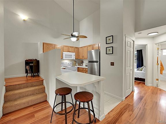 Welcome to this charming 1 bed, 1 bath, 1 car garage with a loft. This South facing unit is on the second floor (top floor) and with that comes beautiful 18 foot ceilings and tons of natural light that beams into the home from the upstairs loft. Every room in this condo has elevated ceilings that help to make the space feel bigger and more spacious. As you walk in the front door, you enter the living room that has a gas fireplace and open concept to the kitchen. If you go up the stairs you will find the loft (17'X12') that overlooks the entire main floor. The primary suit is on the North side of the unit and right next to the full bathroom. Off the bedroom is the in-unit laundry closet (washer and dryer included.) One of the perks to the design of the Stone Canyon Condominiums, is the unit has private access to its own one car (20'X10') garage. This unit faces a park/open space and is near a shopping center and a number of eateries. This condo will surely check all of the boxes. With this unit being the only unit for sale in Stone Canyon, this listing wont last long.