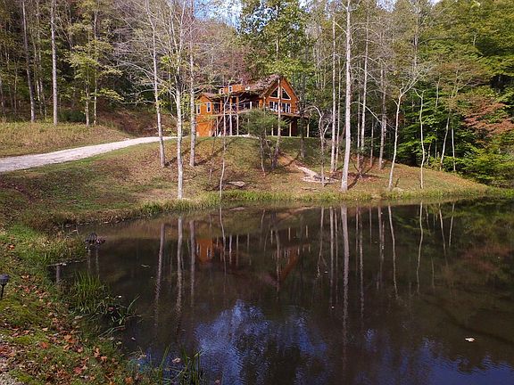 This beautiful log sided cabin in the heart of the Hocking Hills won't last long! Being sold turn key as an existing rental cabin, this is the perfect getaway or investment property ready to enjoy. Overlooking a stocked pond, the setting is ideal for weekend getaways and guests. Featuring 3 bedrooms, 3.5 baths with plenty of room for entertainment in the main floor family room gathered around the gas fireplace or in the lower level watching your favorite movie. The well appointed cabin comes fully furnished including the hot tub. There is also an opportunity for additional building sites. Call today to schedule a showing!