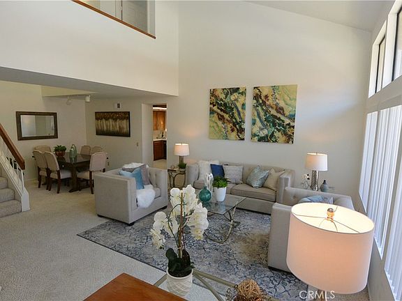 Beautiful end unit townhome situated in the highly desired community of Mariposa. This is the largest model with 1887 sq ft, 3 bedroom 2.5 bath, spacious living room, dining area, kitchen & family room, private patio area. Vaulted ceilings & plentiful windows offer plentiful natural light in this highly desirable home. Master suite with a very generously sized bedroom, walk in closet, dual vanity, shower & tub & water closet. Fabulous location in fantastic bedroom community of Fountain Valley with ample access to the 405 freeway and plentiful shopping & dining options nearby. Quiet community with an association pool, spa/hot tub.