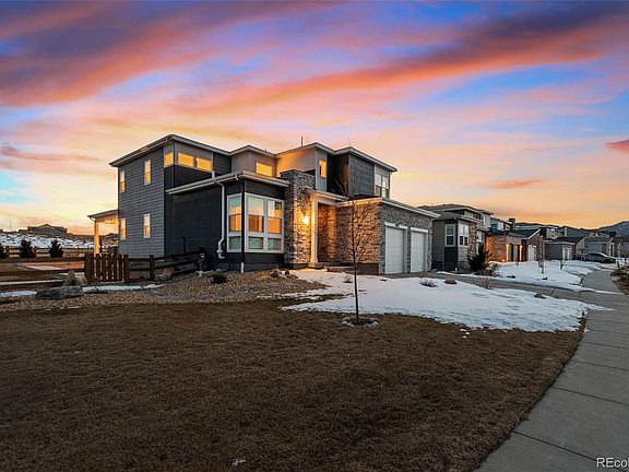 Welcome home to picturesque Candelas in Northwest Arvada and this stunning, like new, Tri Pointe home. Step inside and you're greeted by high ceilings in the foyer. The main level enjoys an open floor plan and attention to detail including upgraded tall baseboards, doors, and flooring. The gourmet chef's kitchen features large kitchen island with quartz counters, farm style sink, exhaust hood, double ovens and more. The open floor plan allows seamless living between the kitchen, dining and living areas. The owners entry features a charming seating area and large closet for all your things. The main level also boosts a large office or bonus room space with custom barn doors and stunning accent wall. Guests will enjoy the privacy of the main floor bedroom and the 3/4 bath with floor to ceiling tile, stone counters and penny tile flooring. Upstairs, escape the day in the oversized Primary Bedroom with custom barn door to your luxury en-suite. The primary bath has been upgraded with heated tile floors including in the newly finished custom closet. Located down the hall, the upper level features a large Loft area with Mountain Views. Two additional, ample sized, bedrooms with their own private full baths are located off the Loft area, as is the laundry room. Upgraded Top Quality Dual HVAC Systems. 3 Car Garage is Insulated & Heated! Located on a large corner lot, enjoy the covered patio and expansive landscaped yard. Take in the sunsets and make s'mores around the gas fire pit. Home has a great location close to parks, trails, open space and growing nearby restaurants and retail. Community enjoys 6 parks, 2 Swim & Fitness Centers, 13.5 Miles of Trails and onsite K-8 school. Come Live Life Wide Open! New Pictures & Video Tour Coming Soon!