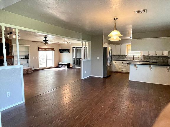 Gorgeous hilltop views is the first thing you notice when you pull up to this home. The sunsets alone will take your breathe away. Large open floor plan perfect for entertaining. Living room is very spacious and open with wood look tile floors through out main living areas. Living room has a wood burning fireplace with blowers that really does a great job of keeping the house warm in the winter and built in bookshelves. Kitchen has new farm style sink and beautiful blue pearl granite counters, white painted cabinets and eat in bar. All the bedrooms are spacious with large closets, recently shampooed carpets. Main bath has multi function full body shower with clear glass surround. Large laundry room/office combo. 1240 sf 3 oversized bay garage not counted in above sf, making total sf under roof 3580 mol. Garage also has a huge storage room, Plus a 2 car carport/covered patio adjoins garage. 4th bedroom is just off living room with its own exterior entry way making it perfect for home office or MIL Suite. It comes with a built in gun safe. Water well has been rebuilt with new pipes, pump, electrical and pressure tank. Roof has a lifetime warranty. This property is 2.3 acres mol with bottom flat area for whatever you can dream and the house sits on the hill with those gorgeous views, surrounds by beautiful trees, shrubs including a cherry tree. Owner is reserving the following items: trampoline, all flower pots, refrigerator, tvs and taxidermy items. Seller is related to listing Realtor.