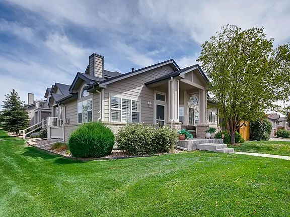 This end-unit, ranch-style, 3-Bed, 3-Bath home in Tower Ridge is waiting for you! It's light and bright with newer hardwood floors and plantation shutters on the main floor, vaulted ceiling, a formal dining room and a large kitchen with eating space, newer stainless steel appliances, granite sink, an abundance of storage and access to a fenced patio. The master suite has its own deck and the 2nd main floor bedroom opens to an awning-covered, fenced patio. The finished basement features a family room, bedroom, craft room, full bath with a jetted tub and a kitchenette. The tankless water heater provides unlimited hot water for as long as you need it! Main floor laundry with newer washer and dryer which will remain. Close to shopping, dining, green belt and public transportation. Welcome Home!