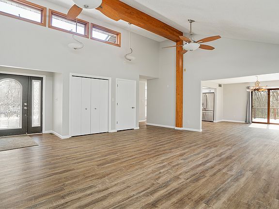 THIS QUALITY CUSTOM BUILT HOME NESTLED AMONGST GORGEOUS MATURE TREES HAS A LARGE OUTBUILDING WITH ELECTRIC. THIS LARGE 1-STORYHOME WILL DELIGHT YOU INSIDE AND OUT! A winding drive leads to this stunning property. Outside there is a multi-level deck that runs the length of the house complete with a sunken hot tub and above ground pool, an outbuilding with electric and raised flower/garden beds. The impressive inside offers a huge l living room with vaulted ceilings with decorative beam and transom windows making the space bright, next to the living room is a dining room open to kitchen. The kitchen boasts custom white cabinetry, recessed lighting, skylight & has an island. Down the hall is he MBR with full en-suite bathroom complete with large double sink vanity, tub & shower, walk-in closet and doors out to the deck so you can just sit and relax and watch the sunrise. Just across the hall are two more additional bedrooms and full bathroom. Fully exposed 1757 SF LL with walkout to a lower patio, just needs to finished for more living & entertaining space. 2 car attached garage. WAKE UP AND ENJOY WHERE YOU ARE LIVING!
