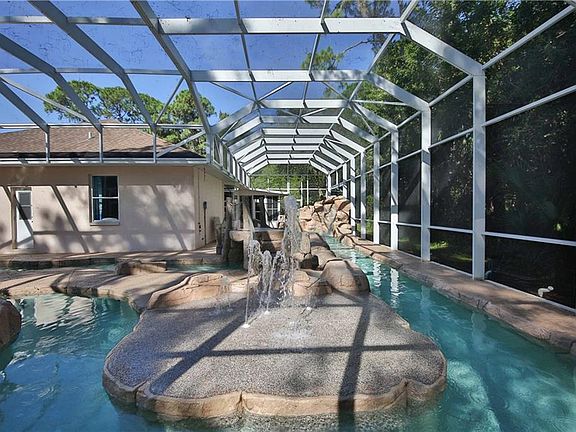 ONE of a KIND House you do NOT want to miss! Want your very own RESORT STYLE POOL? No need to stay at a hotel when you can have this amazing pool in your own backyard! Jump off the rock waterfall, slide into the pool, play at the splash pad or just relax as you float around the lazy river. You can lounge poolside in the middle of it all by way of the wood style bridge or view from your family room through the HUGE aquarium window! Did I mention a Beautiful House on TWO lots (1/2 Acre Home Site) that comes with this pool? One owner, built by an engineer, meticulously maintained Open Floor plan with High tray ceilings trimmed with crown molding, split bedroom plan for privacy and large master suite. So much storage and versatile space in this home; formal dining room could be den / bonus room, office off the laundry room has a half bathroom, lanai converted to Florida Room, used as a game room and there is a gym located in the AC room off the garage. The gym has an exterior door, perfect for a home office or workshop, etc. Newer SS appliances in kitchen, both ACs and water heaters replaced, interior paint and re-plumbed with overhead Pex. Centrally located a minute from Murdock shopping yet tucked away in a quiet wooded neighborhood, this home has it all!