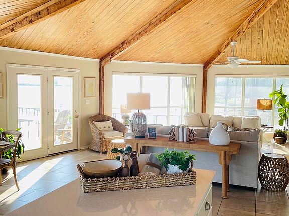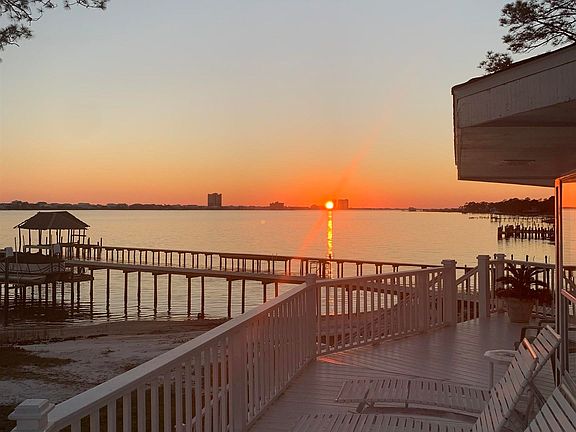 Little Lagoon waterfront at its FINEST! Now is your chance to own 3-bedroom 3 bath home with stunning views of Little Lagoon and breath-taking sunsets. This home has an open concept living area featuring a wall of windows that lets in natural light. The beautiful, stained wood vaulted ceilings in the living area adds character and style. The kitchen features stainless steel appliances, granite countertops, and an oversize island. All 3 bathrooms have been updated. One of the guest bedrooms has double bunk beds for a large family or guests to sleep comfortably. It can accommodate up to 14 people in beds. The large master bedroom has built in cabinetry. The wrap around balcony has fantastic views of sunrises and sunsets. At night, the lights from across the bay provide the perfect setting for outside entertaining. The pier has been replaced plus it had a new roof added last year along with new flooring. The cooling system was replaced in 2019. The outside options for entertaining are endless including boating, jet skiing, fishing, volleyball, an open yard, a hot tub, cookouts plus a private pier. This location is perfect for the peacefulness of the Ft Morgan Road area, yet the attractions and convenience of Gulf Shores attractions are just a couple of miles away. Mo's Landing is only 3 lots west for quick boat launches. This home was built before the setbacks were changed. As a result, it is about 100' closer to Little Lagoon which allows it to have these incredible east sunrises and west sunsets without being blocked by other structures. Buyer to verify all information.