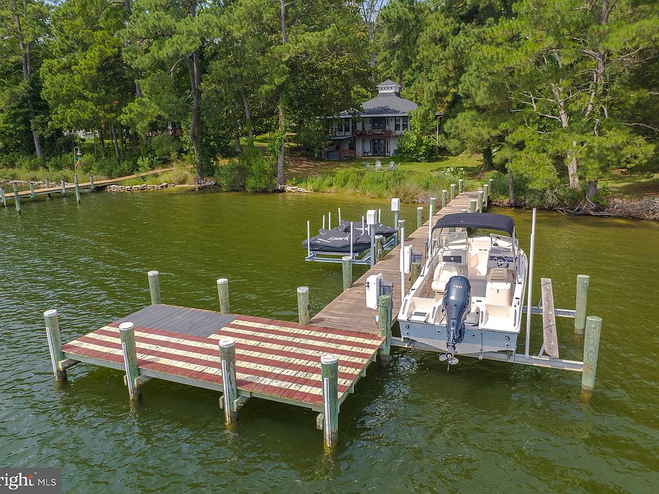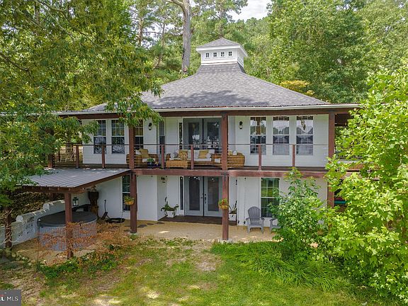 Waterfront Paradise with Tons of Upgrades!! Discover your dream home in this fully renovated waterfront haven, perfectly designed for both relaxation and entertainment. This property boasts deep water access, ideal for sailboats, complete with a private dock featuring two jet ski lifts and a boat lift. Inside you will find a fully renovated kitchen with top-of-the-line Bosch and Samsung appliances, Grohe faucet, honed Carrara marble countertops, and Kitchenaid cabinets, Fully renovated baths with custom sinks and tile floors plus large walk in shower in lower level bathroom. Luxurious Flooring: Amish poplar flooring upstairs and luxury vinyl plank downstairs. Custom Finishes: Solid oak interior doors, cedar paneling on upstairs walls and ceilings, cedar closets and organizers, and cedar beams. Tankless gas water heater, water filtration and softener system.]s Energy efficiency has been upgraded with new windows and exterior doors, and tankless gas water heater Outdoors you'll find an expansive covered wraparound porch with 1400 square feet custom finished with tigerwood deck, perfect for gatherings and outdoor dining. relax in the 6-person spa under a covered metal roof or nap on the twin-size custom porch swing for serene moments by the water. New metal and shingle roof, new cedar-style vinyl siding, 3-car carport, and a spacious 24x12 shed. The property is adorned with many mature trees, including figs, cherry, oaks, pine, and cedar. This home is a rare gem that combines custom features, functionality, and natural beauty, offering an unique waterfront living experience. Don't miss the chance to own this exceptional property!