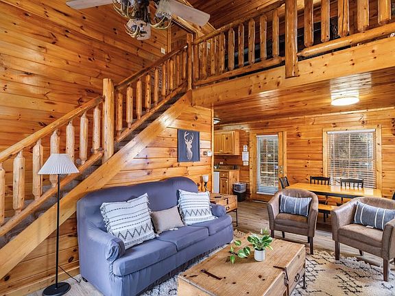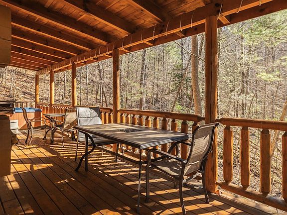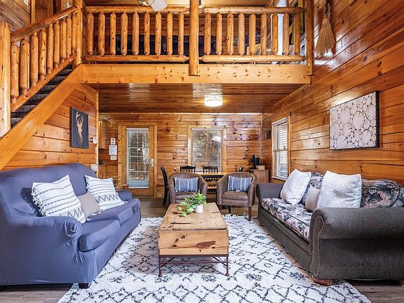 2023 Gross Rental Income @ $47,462 with a 4.85+ rating after 125+ AirBNB reviews! It's difficult to find a cabin that offers so much peace & quiet AND an outstanding location, but this short term rental has a treehouse-like vibe and is strategically located between Pigeon Forge and Gatlinburg. Only a 3 mile drive to get to the Parkway! Upon stepping up to the front door, you'll notice the near wraparound deck on 3 sides of the cabin surrounded by nature. Main floor has an open concept floor plan with a living & dining room combination and a master bedroom on the main floor. Upstairs features an open air loft game room and a large second bedroom and ensuite bathroom with double queen beds and a private deck. Cabin is heavily booked but ask your realtor for a walkthrough video if you can't see it personally when you're in town!