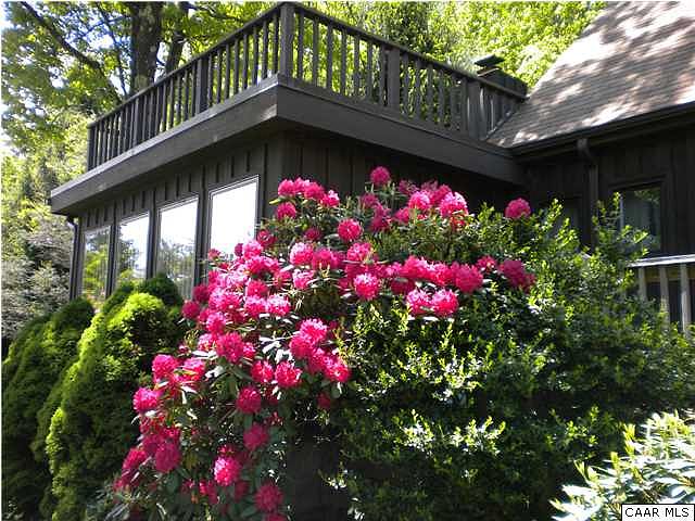 CROZET, VA: Mountain retreat west of Charlottesville on 11 acres backing up to Shenandoah Nat'l Park & Appalachian Trail. Property sits atop Calf Mtn (altitude 2200') in a community of 4 large properties secured by farm gate. Features 2 large decks, one a second story perch off loft bedroom that affords spectacular eastward views. Inside there is a soaring stone fireplace for winter nights plus a delightful sunroom w/ lots of windows and a woodstove. Altitude provides coolness in warmer months.
