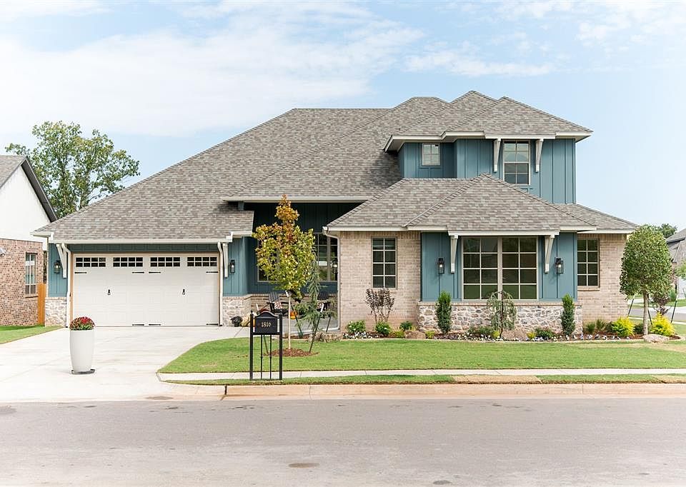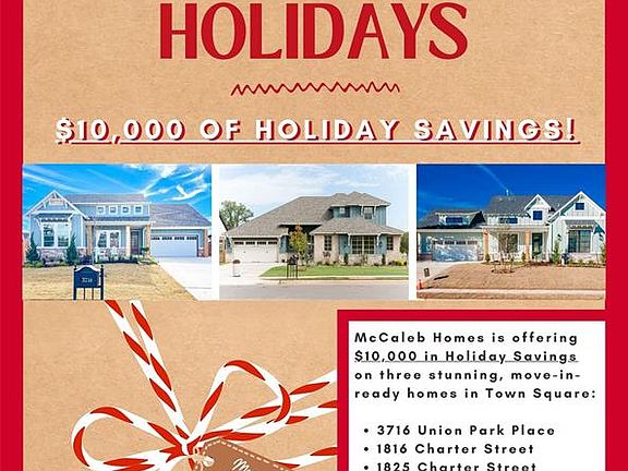 Be Home for the Holidays in this stunning home with $10,000 of Holiday Savings! Discover the stunning Hill Country charm of this brand-new Baldwin plan in the highly sought-after Town Square neighborhood! This exquisite home boasts 5 bedrooms, 4.5 baths, a spacious kitchen, dining area, a dedicated study with built-in cabinetry and French doors, and a 3-car garage. Be prepared to be amazed as you step into the grand entryway featuring a two-story ceiling, elegant checkered tile flooring, and a staircase with a cozy built-in bench beneath it. The open-concept design is perfect for entertaining, allowing you to enjoy your large island while overlooking the living room with a quartzite fireplace and the dining area. The main entertaining spaces are adorned with beautiful site-finished wood flooring, adding a touch of luxury to the home. The primary suite offers a serene retreat with separate vanities, a free-standing tub, an oversized spa glass shower, and a walk-in closet that conveniently connects to the laundry area. This home is currently under construction and finishing Mid Fall 2024. Town Square is Edmond's historically inspired community, featuring the Town Square Residents Club, a resort-style pool, fitness center, youth recreation center, playground, community garden, wooded greenbelt with walking trails, and a lake with a fishing dock. Don't miss the opportunity to own this breathtaking home in such a vibrant and welcoming community!