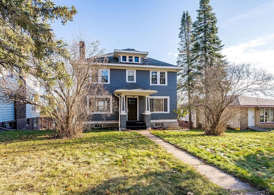 Don't miss this Chester Park traditional with Lake Superior views! This 4 bedroom, 1¾ bath home offers great space, natural light, and tons of potential. The main level features a welcoming foyer, spacious living room with a fireplace, and a bright sunroom overlooking Lake Superior. The dining room and kitchen have an open-concept feel, with stainless steel appliances and even a lake view from the sink. The rear entry leads to a deck and the backyard. The upper level includes 4 bedrooms, a full bath, and access to a walk-up attic for excellent storage. The walkout lower level provides a large laundry room, rec room with gas fireplace, a kitchenette with stove/sink/fridge, a ¾ bath, and a traditional sauna. Fantastic location, great layout, and beautiful views—come see the potential this Chester Park home offers!