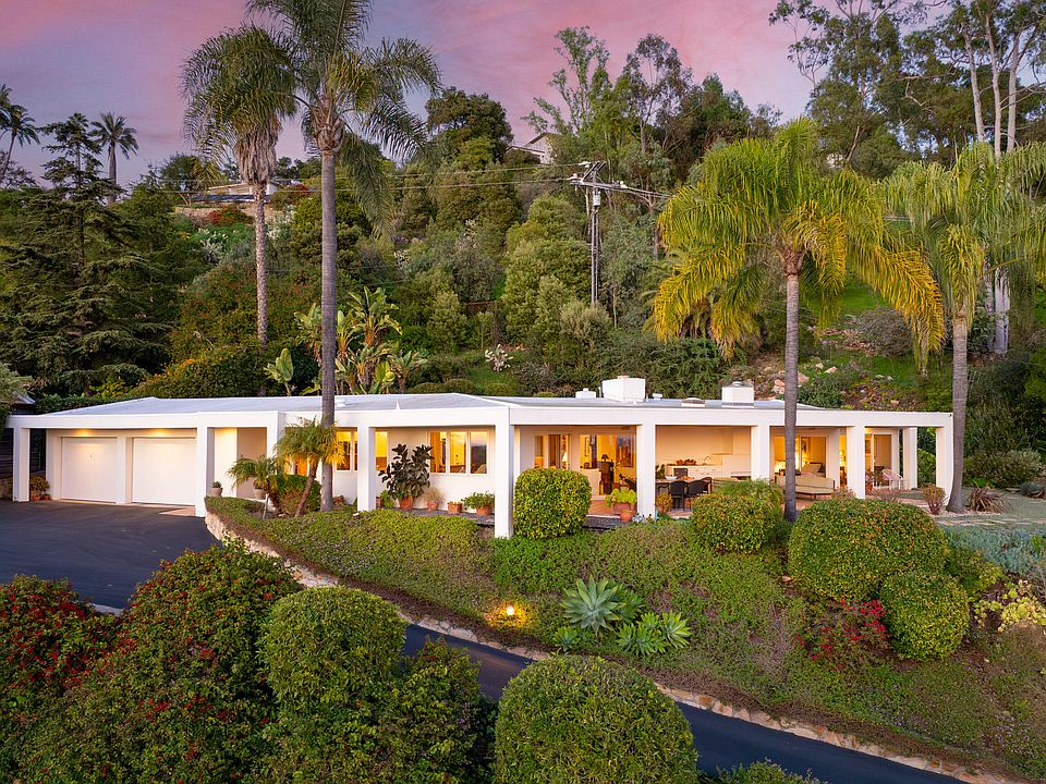 Perched on Santa Barbara's Riviera, this refined single-level residence enjoys commanding views that sweep across the city, the Harbor, and the Channel Islands beyond. The setting is defined by light and perspective—sunrises that gently illuminate the coastline and sunsets that settle into glowing evening skies. At the center of the home, the living room unfolds as a welcoming gathering space, anchored by a fireplace and accented by travertine floors, custom built-in cabinetry, and tailored bookcases. Sliding glass doors extend the room to both the front and rear patios, creating a seamless indoor-outdoor flow. The rear patio provides a serene, garden-oriented escape, while the covered front patio serves as an inviting extension of the main living area. Designed for everyday enjoyment and entertaining alike, the front patio features its own fireplace and wet bar, making it ideal for morning coffee, afternoon gatherings, or relaxed evenings. The living and dining areas flow naturally from this central space, creating a cohesive layout that feels open yet inviting. The kitchen is thoughtfully appointed with rich granite countertops, reverse osmosis filtration, and solar-coated windows that enhance comfort and light throughout the kitchen and dining areas. The primary suite and guest bedroom are beautifully light-filled and thoughtfully positioned, each complemented by updated bathrooms finished in a modern aesthetic. Mature landscaping and terraced garden areas surround the home, offering privacy and a lush, calming backdrop. A rare combination of single-level living, thoughtful updates, and timeless Riviera appeal, this residence reflects a lifestyle of ease, elegance, and enduring quality.