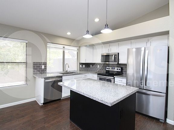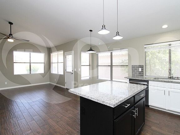 1,660 SQ FT! 3 bedroom, 2 bath house in Gilbert Ranch! Desirable single story floor plan with welcoming entry. Eat-in kitchen with breakfast bar, white cabinetry, and included stainless steel appliances! Open concept living/dining with family room and front living room that can also be used as formal dining. Neutral interior with wood like flooring throughout! Blinds+ceiling fans. This home has 3 nicely sized bedrooms each with ample closet space. Primary suite features a full bath with a walk-in shower, dual vanity sink, wide walk-in closet, and its own outdoor access! 2 car garage! Enjoy a fenced yard with extended pavers and a covered patio. Gilbert Ranch is a well maintained community with walking paths, playgrounds, and nearby public transportation. Fantastic location across the street from shopping, dining, and with easy freeway access! Pet Policy: No Pets Allowed. (Service Animals - Please refer to the Resident Qualification link below) This home is managed by On Q Property Management.
