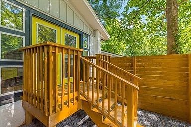 Stylish Mid-century modern open concept home featuring a gorgeous stone accent wall, an eat-in kitchen with a built-in desk/butler's pantry, waterfall quartz kitchen island, subway tile backsplash, stainless steel appliances, and a skylight. Updates include new electrical, new plumbing, new roof, and new interiors. The primary suite has a large bath with double vanities, an oversized frameless glass shower, and a deep freestanding soaker tub! The primary bedroom also has a nice sized sitting/office area and private access to the back deck. Three additional bedrooms share a hall bathroom. Natural light abounds in this beautiful home. Outside there's an enclosed front patio, a large backyard, and a back deck. Just minutes from Langford Parkway, I-75/85, and I-285! Hartsfield Jackson Airport and Tyler Perry Studios are also less than 15 minutes away. Copyright Georgia MLS. All rights reserved. Information is deemed reliable but not guaranteed.