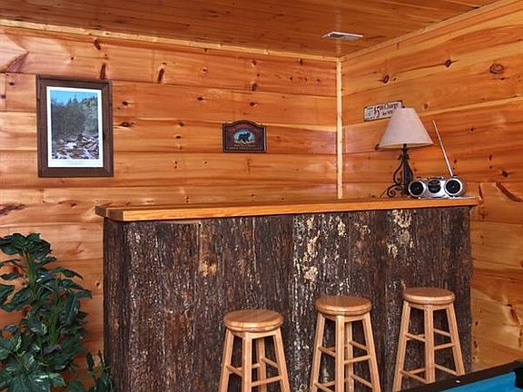 PRIVATE, FULLY-EQUIPPED CABIN IN A GREAT LOCATION!! You are welcomed into this well-maintained cabin by tasteful decor throughout, and a cathedral ceiling & cozy stone fireplace in the living area. Beyond the living area is the open dining area and kitchen. Upstairs is a spacious loft bedroom. Downstairs on the lower level is a spectacular space for the whole gang to hang out complete with game area including pool table & foosball table, a bar, and large screen tv! After all the fun, head outside to the bottom deck and relax in the steamy hot tub or just admire your surroundings from one of the rocking chairs. This cabin has all you need and more! End of road privacy and tastefully appointed throughout. Great floor plan and gleaming millwork. (Short sale with Seller bringing funds to closing to pay the difference!)