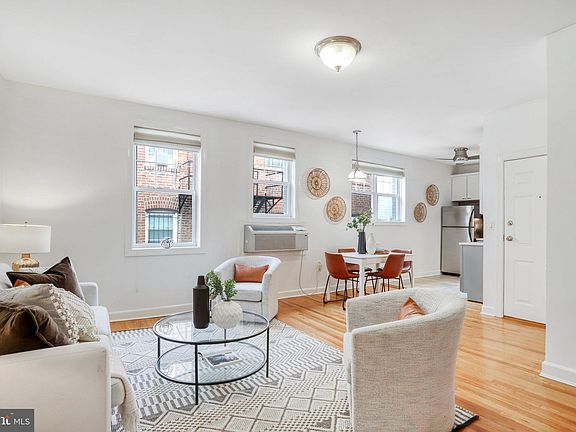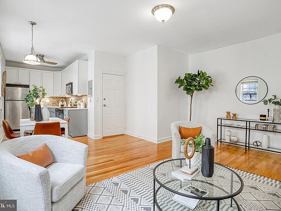 *Offer Deadline Tuesday 7/18 at 2PM, offers will be reviewed Tuesday evening* Welcome to Unit #403 at the Kalorama, a spacious and serenely QUIET corner 2 bedroom, 1 bathroom condo perched on the top floor in vibrant Adams Morgan. Step inside to discover this move-in ready unit with warm original hardwood floors, soaring ceilings, and generous proportions throughout. The sunny Kitchen has been recently updated, featuring newly painted cabinets, pristine quartz countertops, gas cooking, and stainless steel appliances. Seamlessly connected to the Kitchen is a generous Dining and Living area, offering endless possibilities for entertaining, working, or lounging. You'll find ample space for a 4-6 seat table under the four large windows that frame this inviting space. Continuing down the wide hallway, you'll encounter the middle bedroom—a versatile space with potential for a den, office, or guest room. It boasts a roomy closet equipped with a storage system and a space-saving washer/dryer combo (there is also a common laundry area in the building). A charming Jack-and-Jill bathroom with classic tile and a shower/tub combo with glass door connects to the Primary Bedroom. Larger and equipped with more windows than you’ll typically find in the DC condo market, this room offers generous space for a queen or king bed, additional furniture, plus WFH setups. You’ll appreciate the stunning views and ample storage provided by an efficiently organized closet system. Both bedrooms and main living space host new high efficiency heat pump units to effectively heat and cool the environment and keep energy bills low. The Kalorama is a truly beautiful building, built in 1910 and fully renovated in 2007, with elevator access that is pet-friendly. Additional laundry and storage facilities are available in the building's lower level, and there is convenient bike storage outside. Reasonable condo fees include both gas and water. Dining, nightlife, Metro access, and grocery shopping are all just steps away, as this location sits at the epicenter of Adams Morgan and is within a casual walking distance from Dupont Circle, Kalorama, and U Street. Kalorama Park, Marie Reed Recreation and Aquatic Park, and Meridian Hill Park are also nearby, offering amenities like green space, swimming, basketball, tennis and dog parks. Don't miss the opportunity to see this rare jewel in the heart of the city!