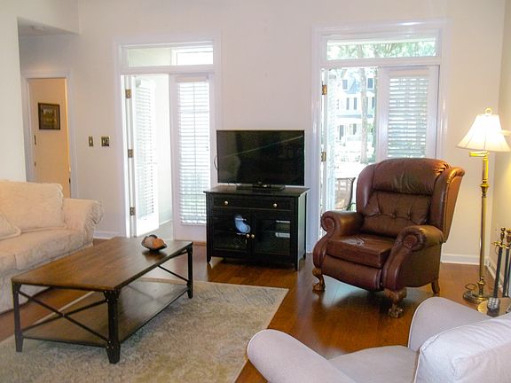 A spacious 1500 sq ft rental with contemporary furnishings. King, 2 twins with linens furnished, sofa sleeper. Beautiful flooring downstairs and amazing views of historic oak trees from the 2 screened porches . Walk to pool complex. Explore over 150 restaurants in the area.