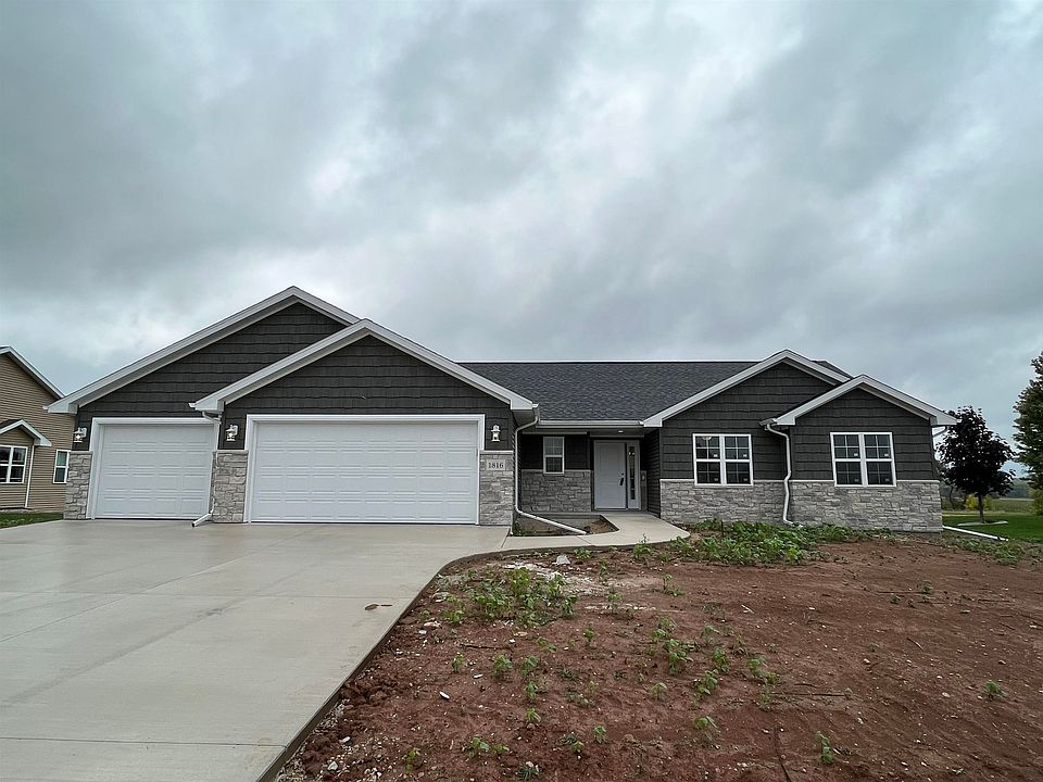 Open concept floor plan, 3 bed 2 bath ranch home located in the desirable East Ridge Subdivision. You will find many features throughout including, zero-step entry, white painted cabinets and trim throughout, vaulted ceilings, master suite with tray ceiling and walk-in closet, large pantry in kitchen, and a fully finished garage. Increase your living space by finishing the basement, exposed windows already installed.