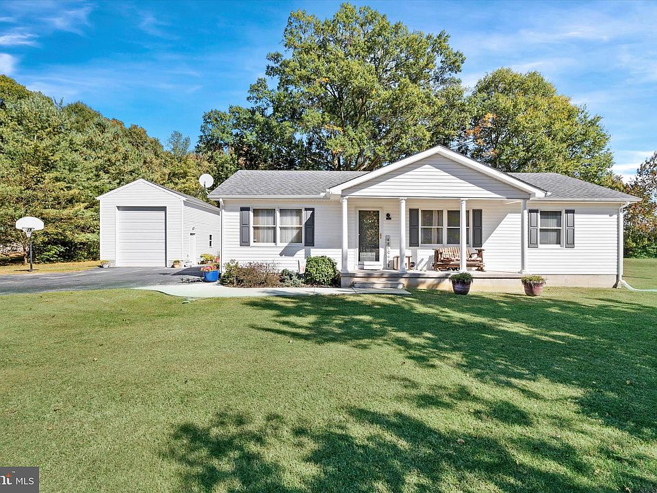 Back on the market at no fault of the Seller! Welcome to 1816 Mount Friendship Road in Smyrna, DE, conveniently located near Route 15, shopping, gas stations, and more. 1816 Mount Friendship is a quaint 3-bedroom, 2-full-bath ranch home sitting on 1.40 beautiful acres of land with NO HOA and NO restrictions. The seller installed a 26Lx16Wx12H detached garage that is insulated and heated. As you enter the front door, you will love the open floor concept, updated farmhouse style flooring, and updated paint throughout. The family room is a large space and provides a capped propane line should you decide to install a ventless fireplace in the future. The eat-in kitchen has been updated with granite countertops, a new black/under-mount sink, new backsplash tile, white cabinetry, new hardware, and updated appliances. The kitchen also has an eat-in breakfast space, a pantry, and is adjacent to the laundry room (with additional access to the driveway). There is a huge sunroom off the kitchen with sliders to the backyard; this space can be utilized in so many ways. The primary bedroom has two closets and an en-suite bathroom. You will find two bedrooms and the second full bathroom at the other end of the home. There have been many updates during ownership, such as: the front porch has been repaired and the posts were replaced with new columns; the well pump and air pressure tank were replaced; the sump pump was replaced; and sump pump pvc was rerouted. The HVAC and A/C unit have been replaced, and the electric heater in the crawlspace (for emergency heat) was replaced. The pvc condensation/backwash lines were re-routed to terminate away from the home. A whole home water treatment system was installed with a neutralizer tank, iron tank, and water conditioner. There is a newer water heater, a new attic fan, and the roof was recently inspected, a new sidewalk from the front door to the driveway, new steps out of the side entrance, replaced both storm doors, and minor repairs (nail pops) have been completed. This home is beautiful inside and out and maintained with great care. You are going to love this backyard! Enjoy your favorite fall beverage on the large back deck (with brand New wood planking and steps) and enjoy the sounds of the leaves falling from the trees. Bring your RV, boat, or ATV's because this is a perfect property. Schedule your tour today!