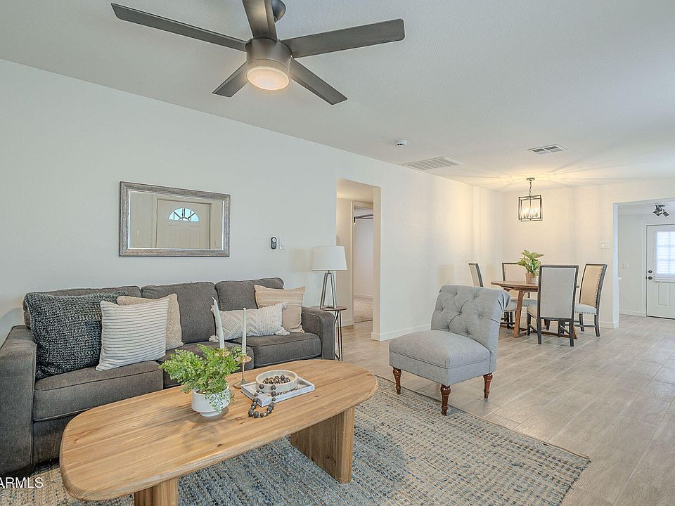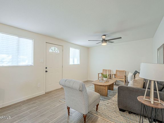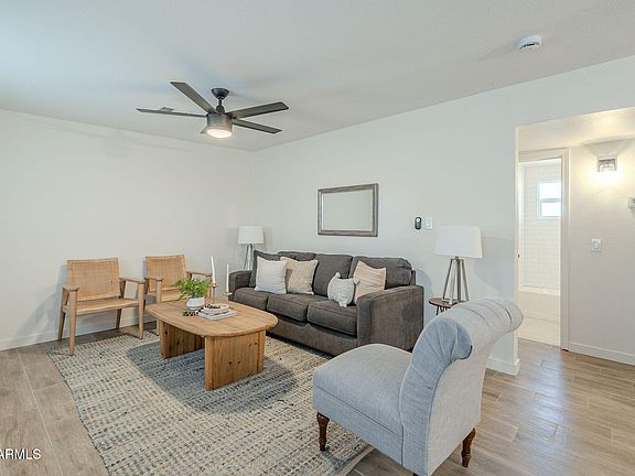 This charming 3-bedroom, 1-bathroom home has been recently updated w/ new paint inside & out, new windows & new water heater. As you step inside, you'll notice the new wood-look tile flooring that flows seamlessly throughout the main living areas. The kitchen is featuring white wood shaker cabinetry, a stylish tiled backsplash, quartz countertops, & brand-new stainless steel appliances. All three bedrooms have been updated w/ new plush carpeting. The bathroom has also been revamped w/ a new vanity featuring a quartz countertop, along w/ a custom tile shower surround. The backyard is a blank canvas, ready for you to create your dream outdoor space, additionally, the large storage shed offers plenty of space for tools, equipment, or extra storage.