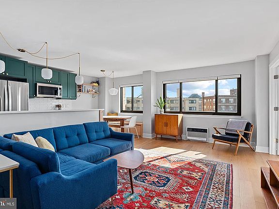 Beautifully renovated and sun-drenched corner 1-bedroom, 1-bath condo in a secure, professionally managed building in the heart of Dupont Circle. This stylish home features an open layout with large windows, hardwood floors, and city views. The modern kitchen includes quartz countertops, stainless steel appliances, emerald cabinetry, and designer lighting. The spacious bedroom offers excellent storage and a calm, comfortable atmosphere. Enjoy a prime location with a 98 Walk Score just steps from Metro, cafes, restaurants, and shops in Dupont Circle, Adams Morgan, and U Street.