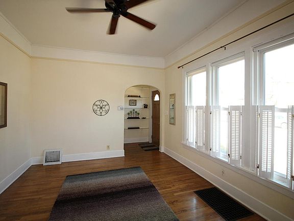 This larger than it looks charming old home is a must see! Beautiful formal living room & dining room pretty archways, woodwork & hardwood floors. Updated kitchen has tile floor & countertops. Appliances included. 2 spacious bedrooms with hardwood floors. Cute Updated bath with pedestal sink and tile floor. Sunken family room in back has gas fireplace and lots of windows that look out onto the pretty, private, park like fenced yard with patio, stone pathways & interesting plantings just waiting to pop up and surprise you this summer! Newer windows throughout. 1 car garage.