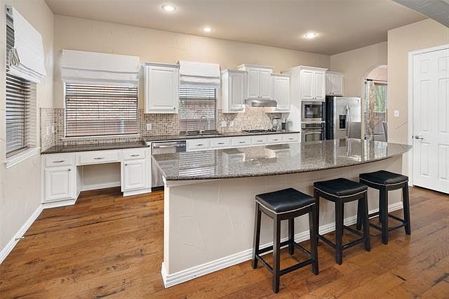 Multiple offers. Deadline noon Monday 6.21.21. One story 4 bedroom with 2 living areas in Twin Creeks near Mary Evans Elem! Located on a culdesac street, this beautiful home includes a large outdoor living area with pergola, mounted TV stays. Eat in kitchen with beautiful white cabinets, huge island, desk area & stainless appliances. Gas cooktop. Pantry. Open to family room with cast stone fireplace. Hardwood floors everywhere except bedrooms and baths.8 foot doors. Fabulous master bath with oversized shower, corner jacuzzi tub, granite counters. Living room could be used as study.