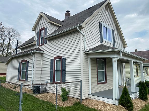 Completely remodeled home and 2 car detached garage. Home features brand new flooring on first level and brand new carpet on stairs and 2nd level. Updated kitchen and full bath. Laundry room off kitchen. Partial basement with updated hot water heater and gas furnace. Updated central air. New roof on house and garage in April 2023. Garage has new vinyl siding and garage doors. Covered front porch with new stairs and paint. Move-in ready home waiting for you.