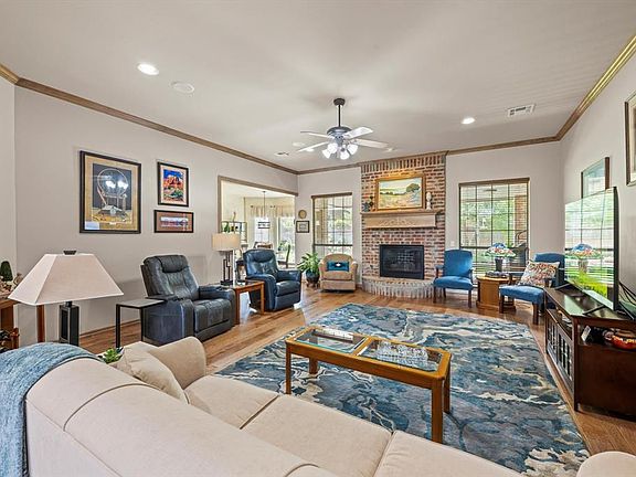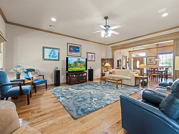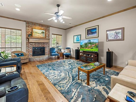 If you care about condition & a well cared for home, DO NOT MISS THIS!! Impeccably maintained 4 bed, 3 bath home in Edmond's Cheyenne Crossing offers high ceilings, spacious living, gorgeous updated wood floors, fabulous landscaping and walking distance to neighborhood pool & Mitch Park. The front door opens to the formal dining and huge living room with 10 foot ceilings and a lovely gas log fireplace as the focal point + windows overlooking stunning backyard. More serene views from giant picture window in sunny breakfast nook, next to kitchen which offers breakfast bar seating, granite counters, gas cooktop and ample storage. You'll love the split plan which features a large primary bedroom with tray ceiling, generous bath with separate vanities, frameless glass shower and whirlpool tub plus a generously sized walk-in closet, as well as a secondary bedroom currently set up as an office on one side of the home. A full bath which is easily accessible to guests completes this wing of the house. On the other side of the home you'll find two additional bedrooms with walk-in closets and a jack-n-jill bathroom. The giant, extra deep three car garage can accommodate a workbench and extra freezer or fridge & includes in-ground storm shelter. Above the garage you find a fully floored attic space providing oodles of storage. Enjoy your favorite music on the built-in speakers inside or outside on your oversized covered patio overlooking your private backyard. Recently replaced A/C Condenser w/ Transferrable 10 Year Warranty & hot water tank. Such easy access to shopping, restaurants and active lifestyle amenities, schedule your showing soon!