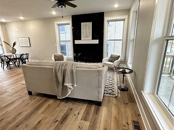 Welcome home! Stunning, high quality, new construction located on quiet side street next to a park but walking distance to downtown Des Moines! Gorgeous, warm wood flooring, tons of large, quality, Anderson windows keep this home bathed in natural light. Nine foot ceilings throughout, including the basement. Basement features 2 egress windows and is framed and ready for you to finish a 4th bedroom and 4th bath. 18 seer AC, LVP flooring throughout, lifetime shingles and tile backsplash are just a few of the upgrades in this beautiful, must see home. 6 years tax abatement and up to $10,000 forgivable loan for the buyer who chooses to finance through NFC.