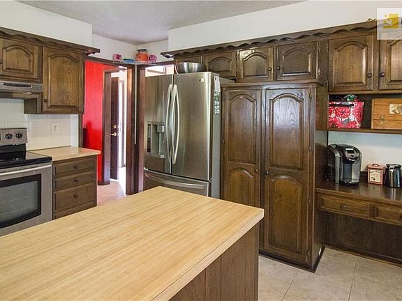 Lots of space everywhere. Full large covered deck expands living area out to very large level, treed, fenced yard with patio and fire pit. Front porch boasts of nice wide staircase and seating area, great for photos! Use the extra 2 non-conforming bdrms in LL for office/hobby space. Feel secure knowing you have a nice big storm shelter & 2 wd burn fireplaces. Room for workshop in the oversized garage. All floors have been updated with tile, new carpet and beautiful wood. Nicely laid out home. Don't wait-View today!