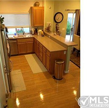 This house is in great shape with wonderful appeal. The kitchen / dining area has beautiful wood flooring that works in well with the solid surface counter tops and stainless steel appliances. Most windows have shutter blinds which complement the great paint colors. The kitchen is also fitted out with a water purifier for nice tasting clean water. All bedrooms are upstairs with the master being large and having a tub and shower. The complex is close to shops, schools, freeways, and great walking