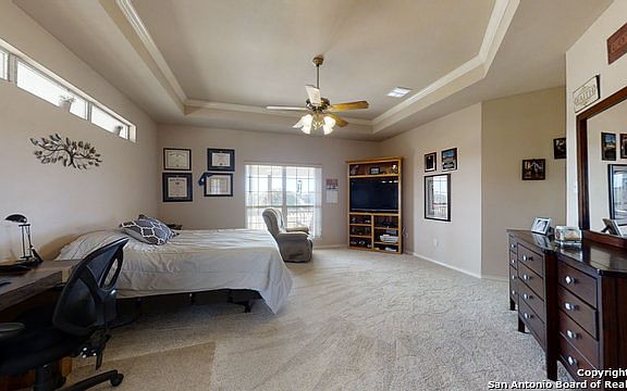 Hill country views for miles!!! Custom 1 story gem nestled on oak studded property w/over 5 acres at end of cul-de-sac. Wrap around porch offers endless views! Ceramic tile in all living & wet areas. Impressive kitchen has gas cooking & walk-in pantry. Amazing floor to ceiling rock fireplace & soaring ceilings in family room. Owners retreat has separate jacuzzi tub & shower & large walk-in closets. Lots of windows enable owners to enjoy view. An absolute must see!!!
