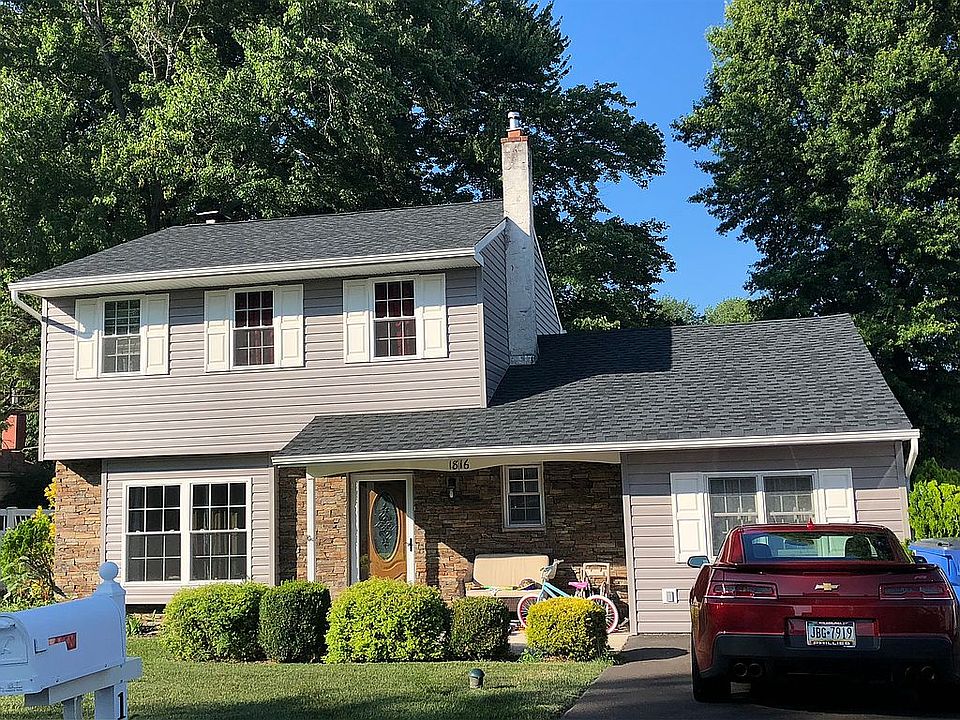 Spacious colonial style home with kitchen nook addition with full wall windows for a bright and pleasant atmosphere and a door to the backyard. Garage has been finished into a bonus room for work or play. Also has a staircase to the attic loft for easy access. Living room has a cutout into the family room. Family room features a new sliding door to back patio and a brick fireplace. Eat-in kichen is expanded and has updated wood base and overhead cabinets with newer appliances. Yard features a patio and a privacy fence. Central AC replaced in 2017. Roof, windows and siding all replaced in 2018.