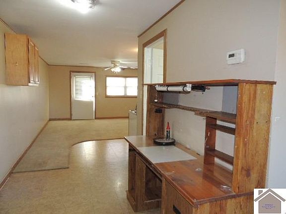 Shophouse type property just outside city limits. Exterior features screened porch, outbuilding and circle drive. Built in 2005. Sits on approx. 1 1/2 ac lot. $15 month lagoon fee Gas line has been disconnected to fireplace but can stay with property if buyer is interested.
