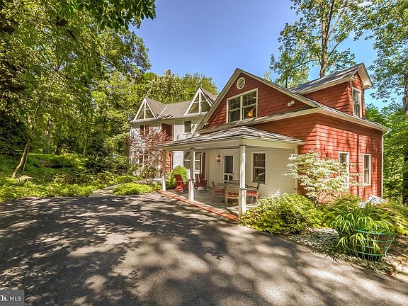 Social Distancing at its BEST! Nestled on a 1+ acre wooded lot in the heart of Mt. Washington, this renovated 1880s cottage coupled with an over 2000+ sf contemporary addition (designed by award winning architect Rebecca Swanston - American Visionary Art Museum - AVAM) is most assuredly a bonafide remarkable find. The 4300+ sf five bedroom, four full bath and one half bath residence boasts every modern convenience and design detail while maintaining a bygone charm with a contemporary edge. Enter this home's 2000+ sf modern addition built in 2014 through the soaring two-story entrance and immediately be blown away by the floor to ceiling wall of windows behind the open riser stairway revealing waving treetops and warm sunlight. This main level offers an oversized living/dining area with warm solid cherry floors underfoot, a cozy den with custom designed bookshelves and french doors leading to the bluestone terrace and a practically designed mud/storage room with bench seating, shelves and hooks. Continue through the solid glass-walled skywalk to the huge eat-in kitchen with an oversized island with a Caesarstone countertop. Every modern amenity has been thoughtfully provided and this space is truly a chef's dream. Ascend the original staircase to the upper level Guest Suite with ample closet and seating space and full bathroom. Descend the other original staircase with clerestory windows and you'll find another full Guest Suite with it's own private entrance, seating area and full bath. Glide up the free floating open main stairway to the 100% wool fully carpeted upper level. To your right you'll find two bedrooms flooded in light from the large triangular windows and cathedral ceilings. Each room has a large closet and there's even a convenient laundry chute, too! A full bathroom with a deep tub and shower combo finish out this space. Travel across the open balcony walkway to the Main Suite and discover the generously sized bedroom with cathedral ceiling and views of your treetops through the wall of windows! A large walk-in closet awaits with custom designed shelving, drawers and hanging clothes areas. Next, enter the huge main bathroom and appreciate the grand custom vanity with double sinks and loads of storage. Check out the spacious glass walled walk-in shower with dual fixtures and soaring catherdral ceiling. There is even a linen closet within the main bathroom for your convenience. Descend the main stairway and make your way down to the new addition's fully finished lower level where your own personal theater awaits! This sizeable room with cushy and quiet cork flooring has up/down sconce lighting on dimmers, a 110~ W movie screen, a high-end projector, a surround sound system including 8+ speakers, additional wall-mounted sound absorbers and optimized raised stadium seating. You have to SEE it to believe it! Also on this lower level you will be pleased to find a fully functional separate laundry area with ample shelving and storage. Too, there is a large recreation room with a wall of storage closets with shelving and a bar area complete with a sink, cabinets, wine cooler and full fridge/freezer. What more could you ask for? Perhaps you'd prefer to spend some time relaxing amidst your towering forested 1+ acre grounds and kick back on the covered front porch or relax on the private bluestone patio with thoughtfully selected native landscaping and hardscaping. Whatever your dreams are made of you're likely to find them waiting for you right here! All of this natural beauty and privacy yet less than a 5 minute stroll to Mount Washington village and only 10 minutes by car or light rail to downtown Baltimore.