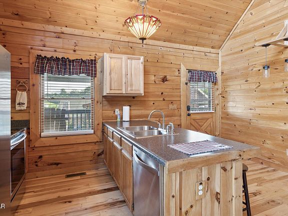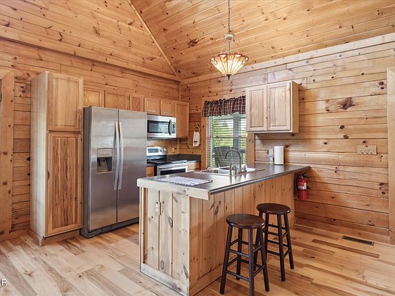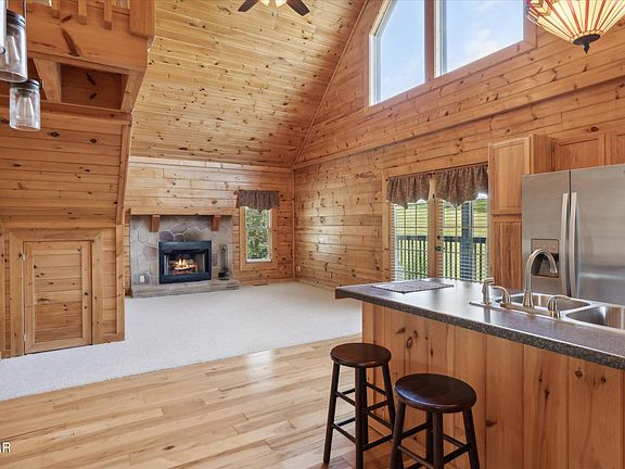As you enter this beautifully maintained 2 Bedroom 2 bath log cabin the spacious great room with a cathedral ceiling welcomes you to relax and enjoy the country cabin charm of the space, The living area features a wood-burning fireplace and French doors that lead to the covered wrap around deck. The fully equipped kitchen has stainless-steel appliances and plenty of cabinet space. Access the loft from the living area which can serve as an activity area, a bedroom or whatever your imagination can create. Back to the main level where you will find the two bedroom each with its on full bath. Also, the new washer and dryer are conveniently located in the hall closet. If you enjoy relaxing outside the wrap-around covered deck offers 576 sq ft of space to enjoy the landscaping which include crepe myrtles, butterfly bushed and ornamental grasses and wide-open views. Make this your next vacation oasis or add to your short-term rental portfolio. Rental projection
