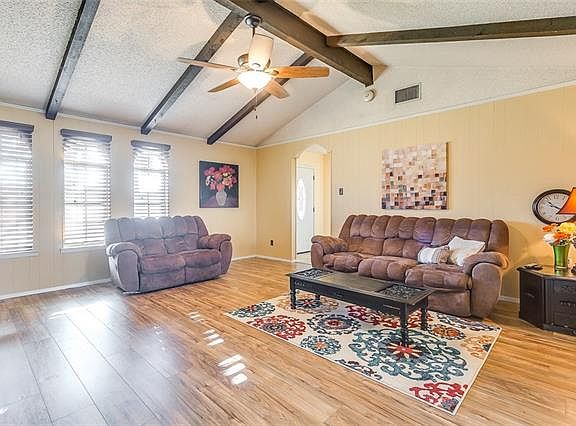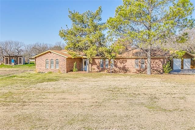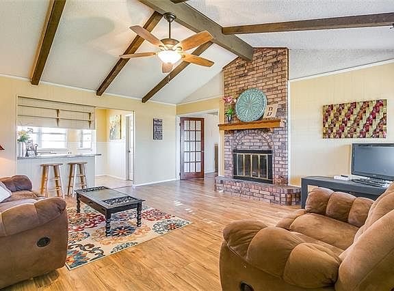 3 Bedroom 2 Bath home on .98 Acre. Family Room with Floor to Ceiling Brick Wood Burning Fireplace & Vaulted Ceiling with exposed Wood Beams. 2nd Living Area with abundant amount of space perfect for entertaining! Kitchen with Breakfast Bar & Cabinets Galore! Large Master Bedroom. Detached 2 Car Garage.