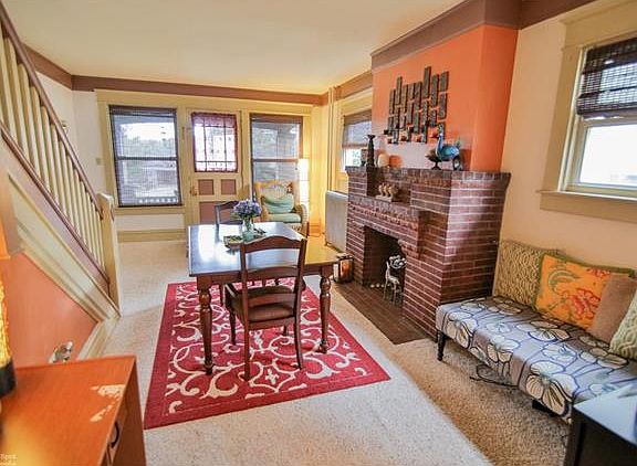 Conveniently located Turn Key Bethlehem Twin! Move right into this spacious 3 bedroom 1 and a half bath charming home! Immediately feel welcome as you enter upon the quaint covered front porch with plenty of space for rocking chairs & guests! First floor features a large family room and dining room combo with high ceilings, original woodwork, neutral color tones and brick fireplace! Enjoy the large eat in kitchen with updated cabinets, pendant lights, center moveable island & breakfast nook! Utilize the kitchen as your dining space and then you can have the rest of the first floor for a family room! Access the private fenced in rear and side yard from the kitchen! Future rear off street parking is possible! Second floor boasts three nice sized bedrooms and a full hall bath! Plus an office, walk in closet or "whatever" room! All appliances remain! Economical gas heat! Partially finished basement with laundry area & plenty of additional storage! Call to schedule your appointment today!